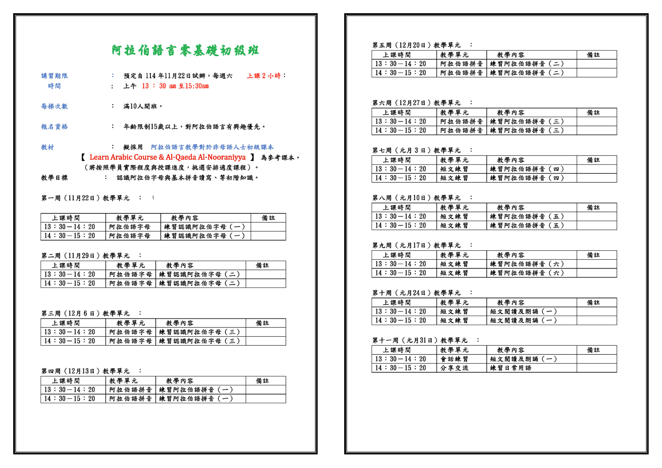 台北清真寺 阿拉伯語零基礎 再次開課囉