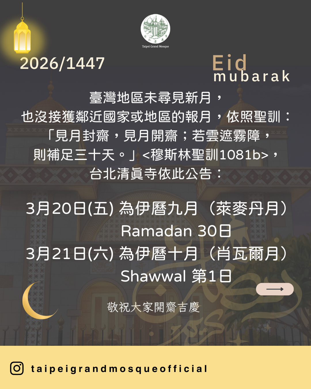 2026 /1447 開齋節日期公告